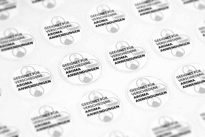 Im Vergleich zu PVC-Sticker sind Papieretiketten nicht wetterfest und deshalb nicht für die Aussenanwendung geeignet.