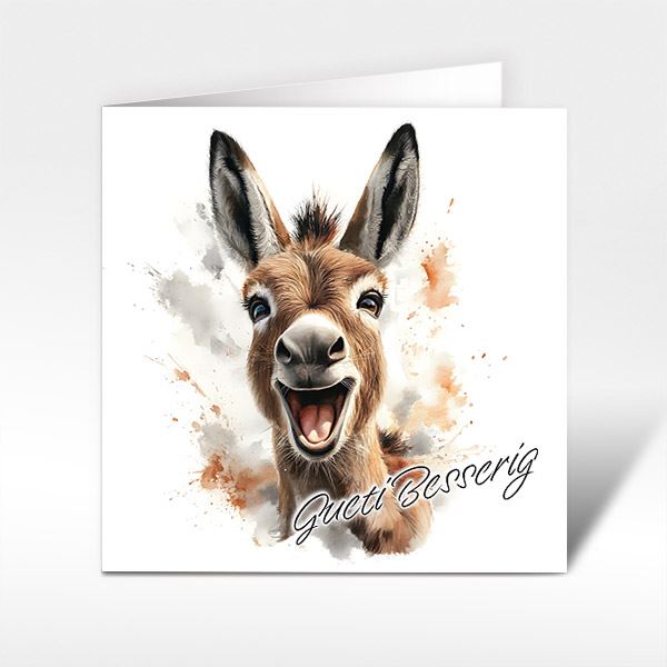 Glückwunschkarte fröhlicher Esel "Gueti Besserig"