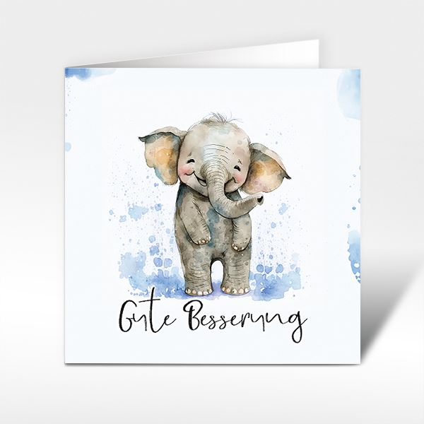 Glückwunschkarte kleiner Elefant "Gute Besserung" in blau