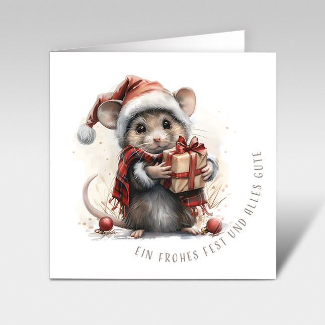 Weihnachtskarte Süsse Maus 02 "Frohes Fest" 12 x 12