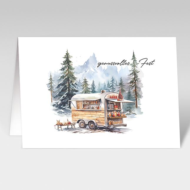 Weihnachtskarten "genussvolles Fest" Leckereiwagen